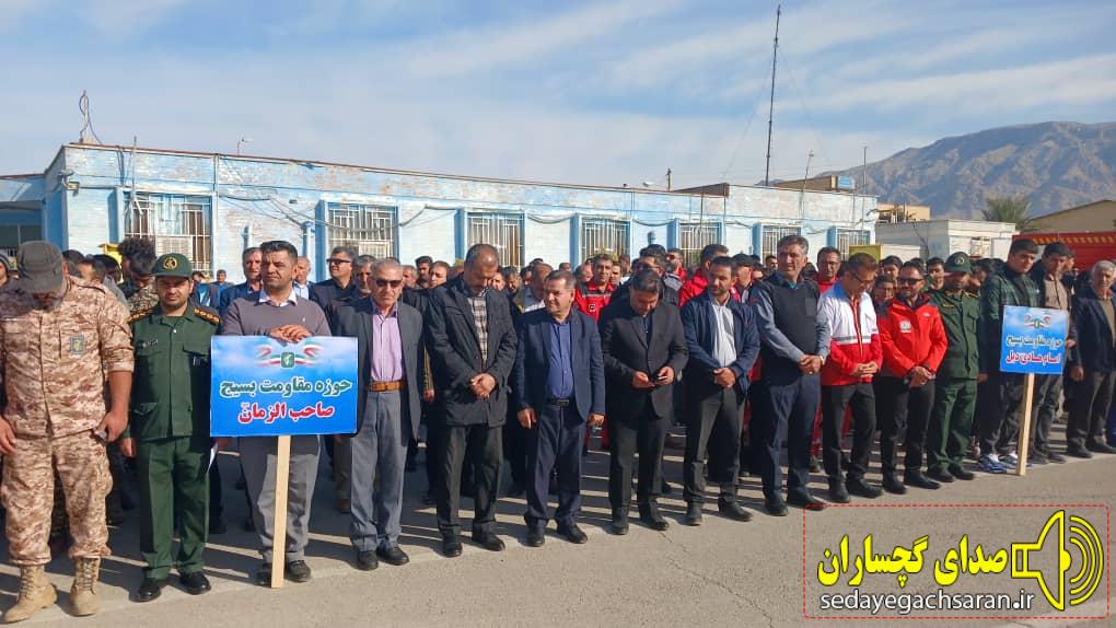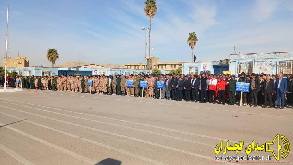 رزمایش اقتدار پیامبر اعظم باهدف نشان دادن توانمندیها و آمادگی مردم برای دفاع سخت و پشتیبانی از نظام مقدس جمهوری اسلامی در گچساران برگزار شد.