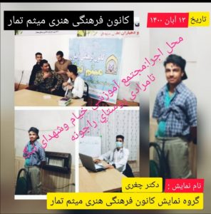 به همت کانون فرهنگی هنری میثم تمار کارگاه آموزشی اجرای نمایش در مسجد فاطمه الزهرا تنگ تامرادی بویراحمد برگزار شد