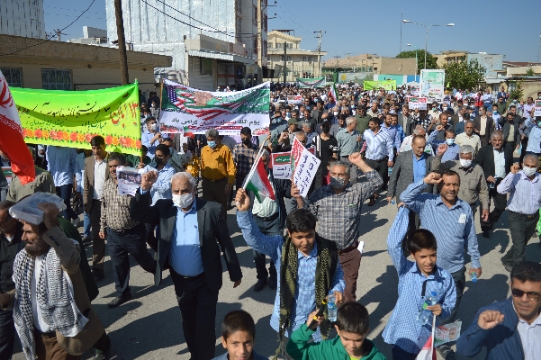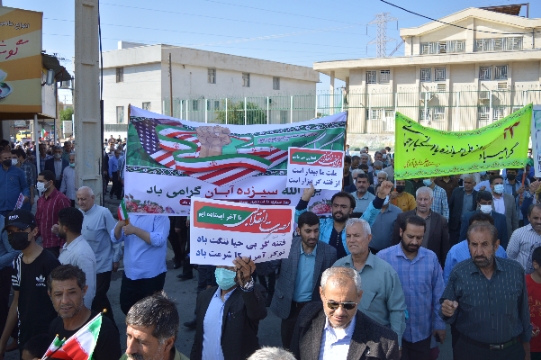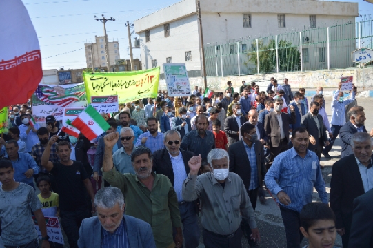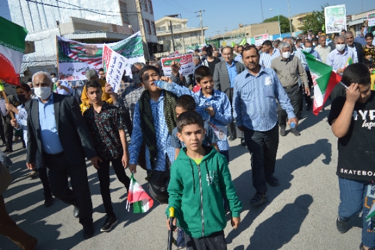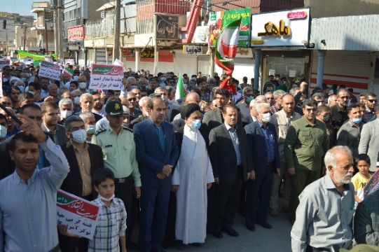 در این راهپیمایی اقشار مختلف شهروندان این شهرستان ازجمله دانشجویان، علما، روحانیون، نیروهای نظامی و انتظامی و دانش آموزان همگام با مسوولان فریاد استکبارستیزی سر دادند.