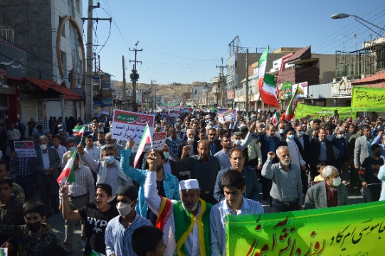 صدای گچساران – راهپیمایی روز سیزدهم آبان ماه امروز جمعه همزمان با سایر نقاط کشور با حضور گسترده اقشار مختلف مردم شهرستان گچساران برگزار شد.