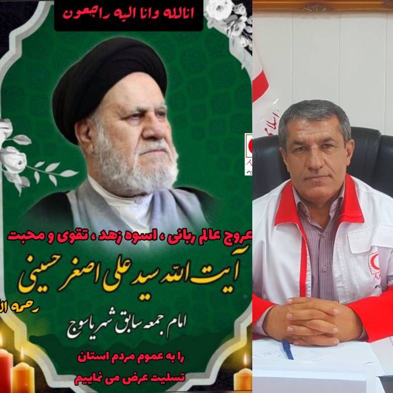 به گزارش صدای گچساران مدیرعامل جمعیت هلال احمر استان کهگیلویه و بویراحمد طی پیامی درگذشت آیت الله حسینی امام جمعه موقت سابق یاسوج را تسلیت گفت بسم الله الرحمن الرحیم انالله وانا الیه راجعون يا أَيَّتُهَا النَّفْسُ الْمُطْمَئِنَّةُ ارْجِعِي إِلى رَبِّكِ راضِيَةً مَرْضِيَّةً فَادْخُلِي فِي عِبادِي وَ ادْخُلِي جَنَّتِي عنه صلى الله عليه و آله