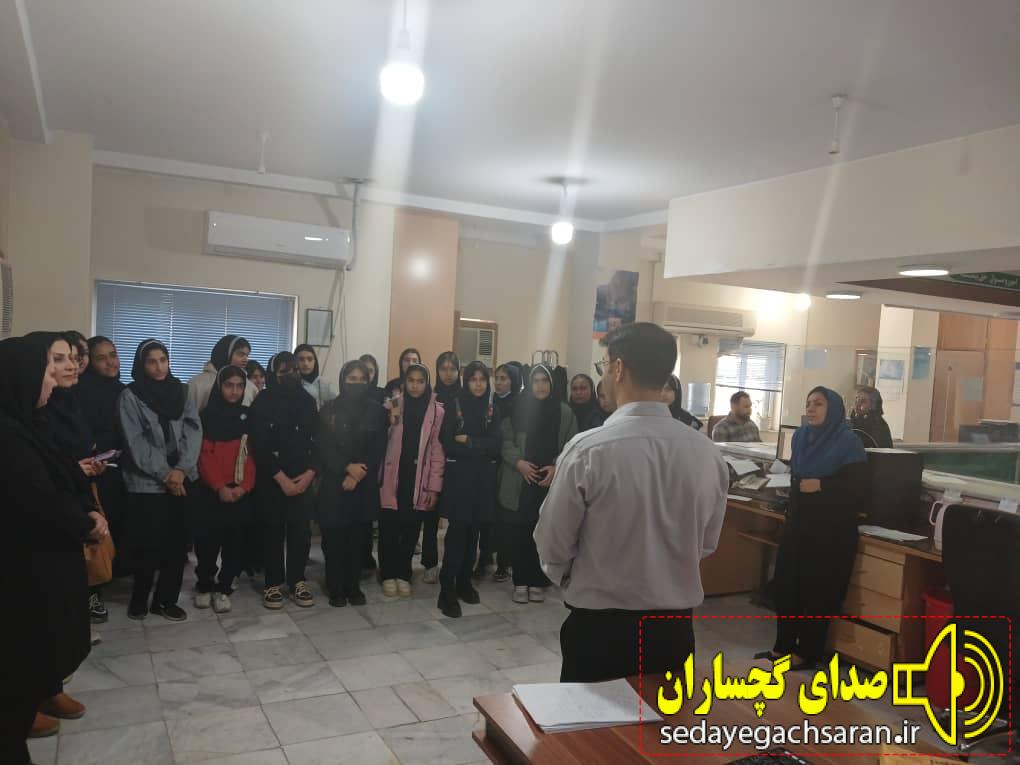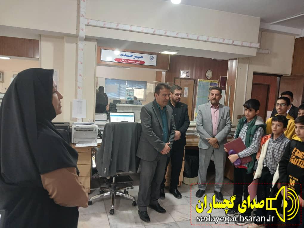۶۰ دانشآموز دو مدرسه متوسطه نمونه دولتی شهید رئیسی و تیزهوشان گچساران از اداره بیمه تامین اجتماعی بازدید داشتند. صدای گچساران : دکتر رامین بهیارفر رئیس اداره تامین اجتماعی گچساران درباره این بازدید اظهار داشت: این بازدیدها هر ساله و به منظور آشنایی دانشآموزان با نحوهی کار این اداره انجام میشود. رامین بهیارفر در ادامه