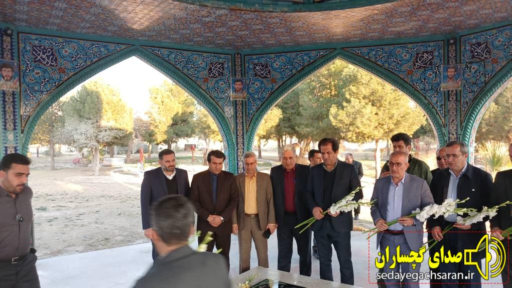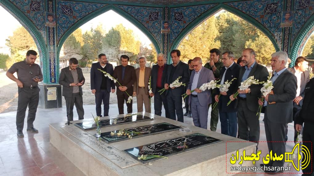 ابتدای این آیین مسئولان با حضور در بوستان شهدای گمنام گچساران با آرمان های والای انقلاب اسلامی،امامین انقلاب و شهدا تجدید میثاق کردند.